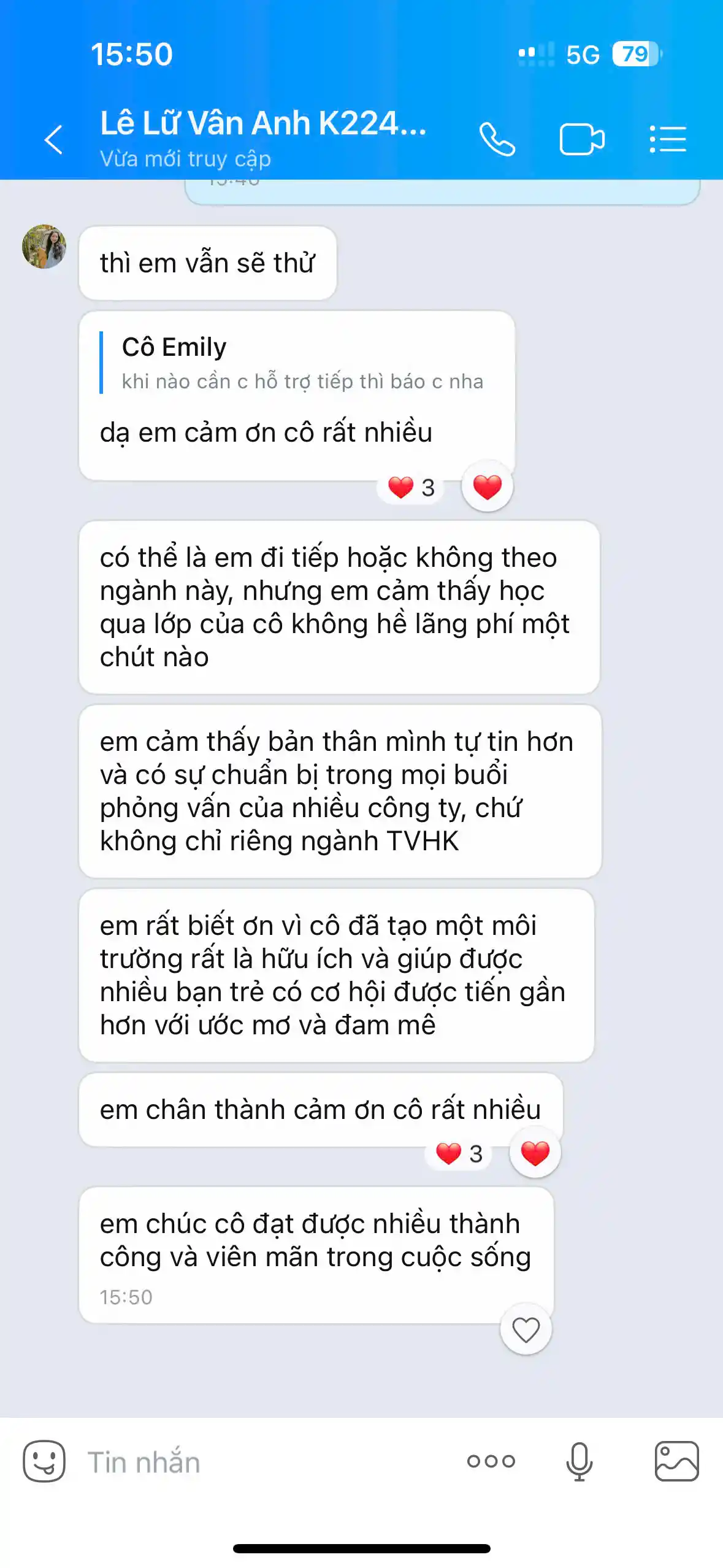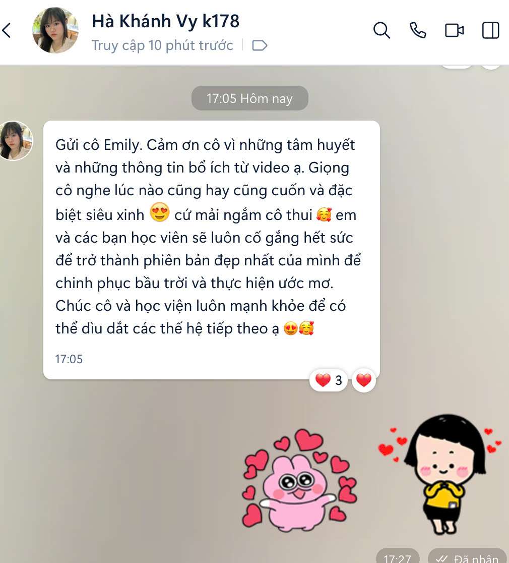 * Cập nhật các thông tin, lời khuyên từ cô Emily để vượt qua các vòng thi tuyển.